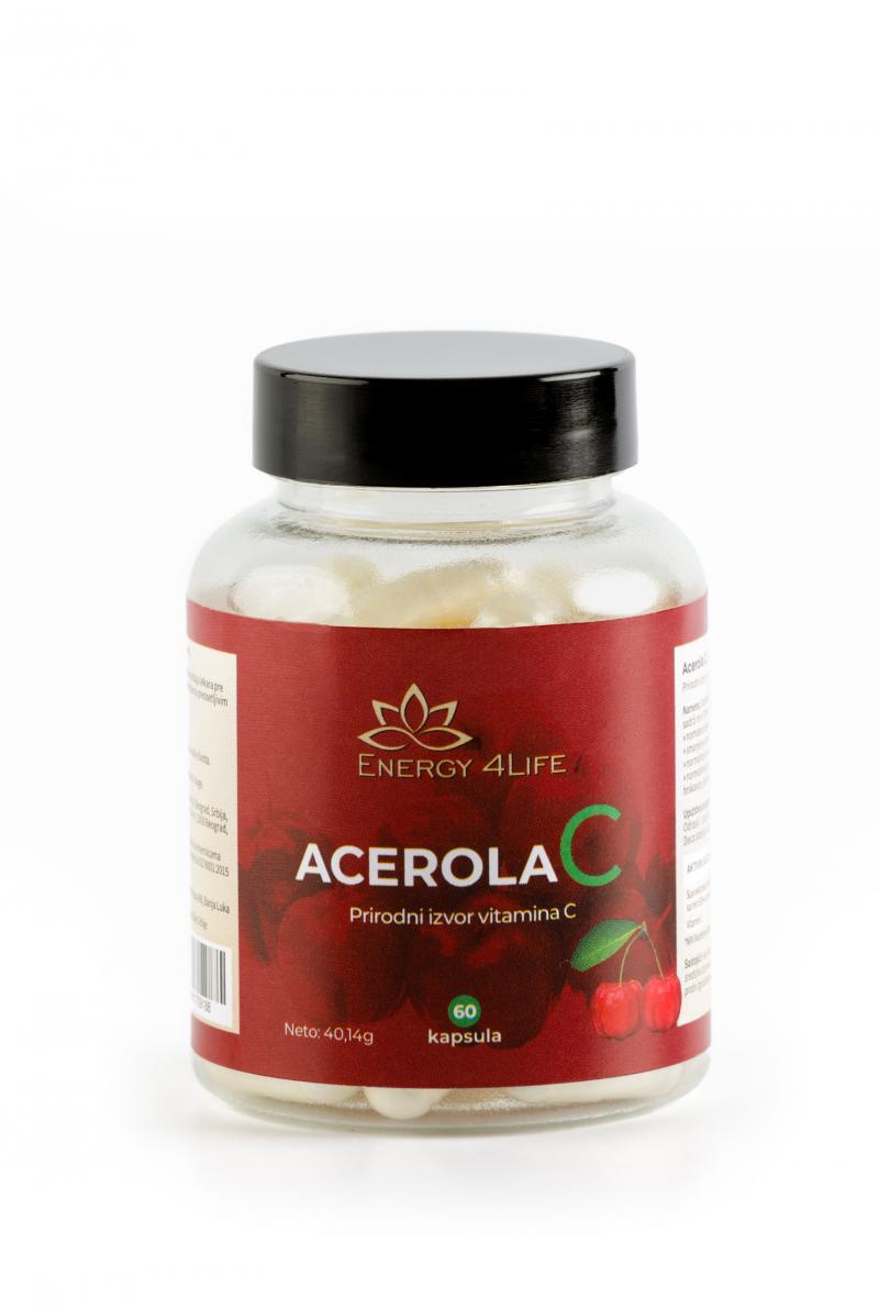 Acerola C sadrži suvi ekstrakt ploda acerole i vitamin C. Plod Acerole predstavlja značajan nutritivni izvor vitamina C 1000-4500mg/100g, kao i pektina, karotenoida, folne kiseline vitamina B grupe kao i vitamin P (RUTIN).