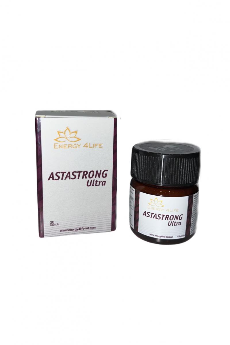 Astastrong Ultra je jak antioksidans i može se koristiti kontinuirano u prevenciji mnogih oboljenja, jer nema neželjenih dejstava. Pozitivne efekte ispoljava na ćelijskom nivou i na taj način poboljšava funkcionisanje organa. Veoma važna komponenta ovog proizvoda je astaksantin koji pripada grupi karotenoida, molekula koji se u prirodi stvaraju u biljkama. Najbolji prirodni izvor astaksantina je oleorezin dobijen iz alge Hematococcus Pluvialis.